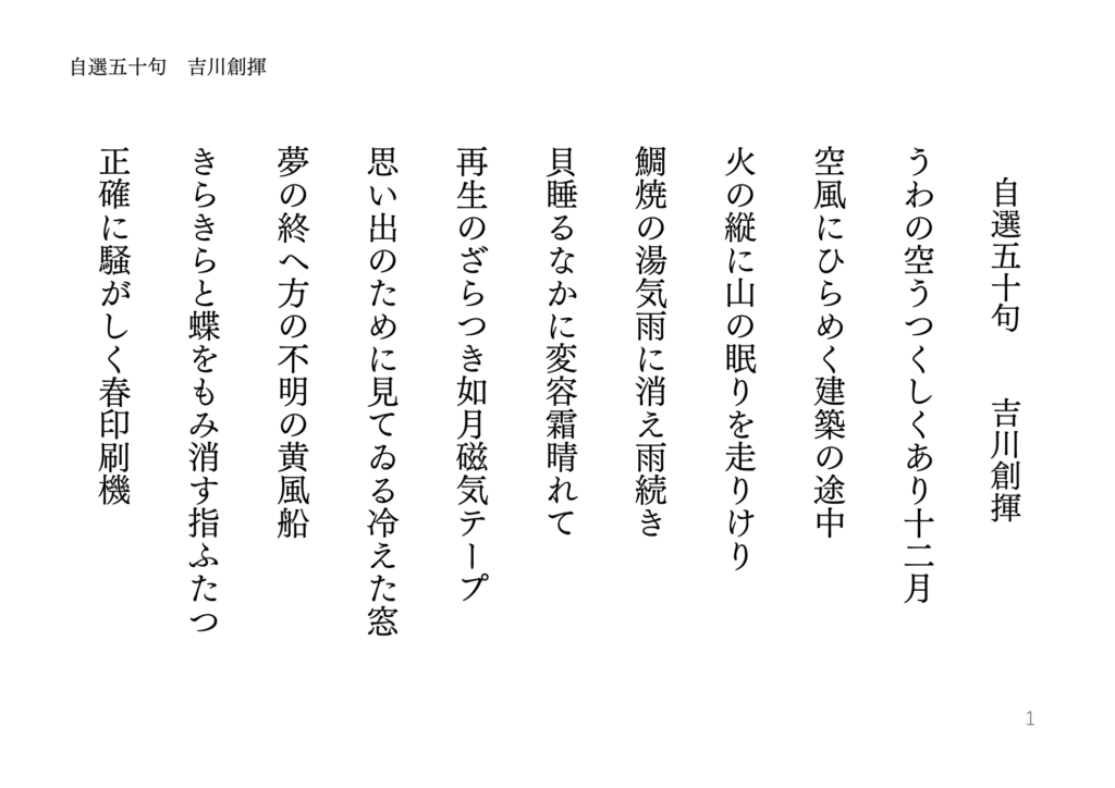 自選五十句 吉川創揮